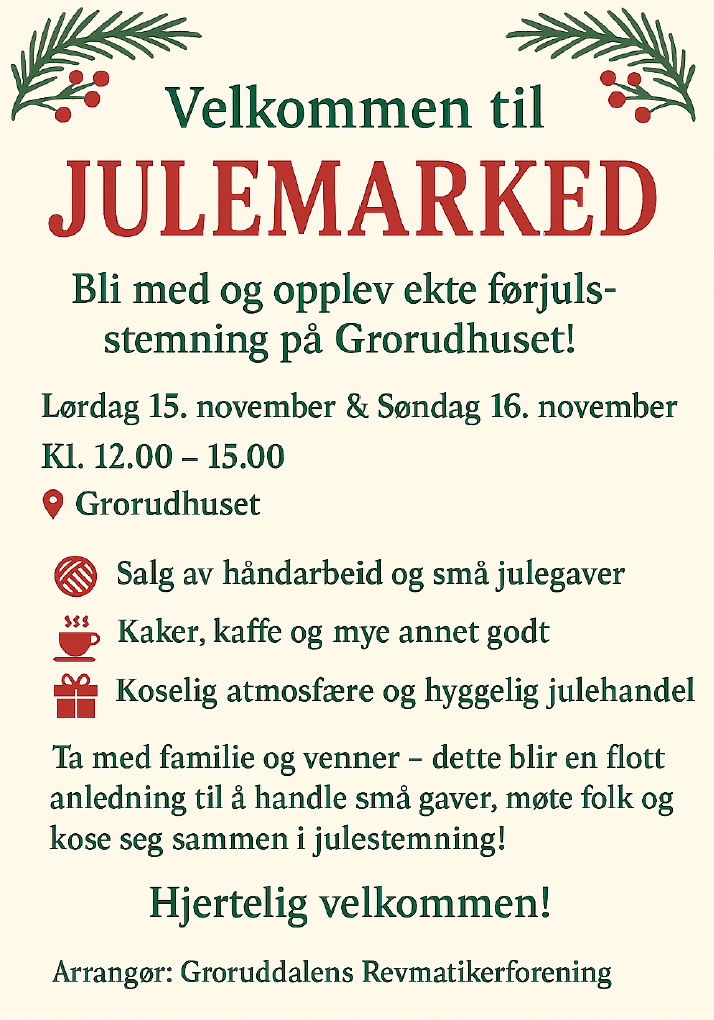 Skrevet av: Oslo / Publisert: 15.11.2025 / Oppdatert: 13.11.2025 Postet i: Groruddalen Revmatikerforening / Aktivitet: Ã…pent og for alle Del: