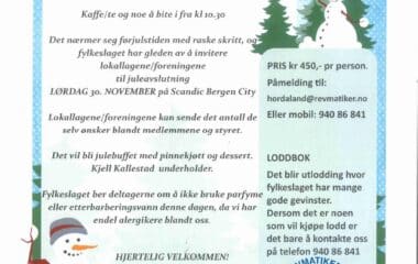 Lørdag 30. november kl. 11-15. På Scandic Bergen City. Kaffe/te og noe å bite i fra kl. 10.30. Det nærmer … Fortsett å lese Juleavslutning for lokallag