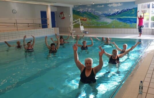 Trening i varmtvannsbassenget på Elverhøy Helsetun, Nesbyen: