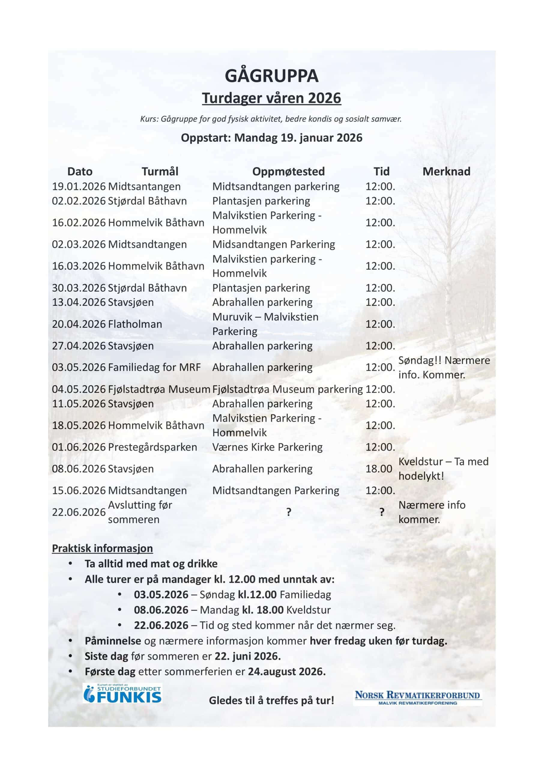 Gågruppa oversikt våren 2026
