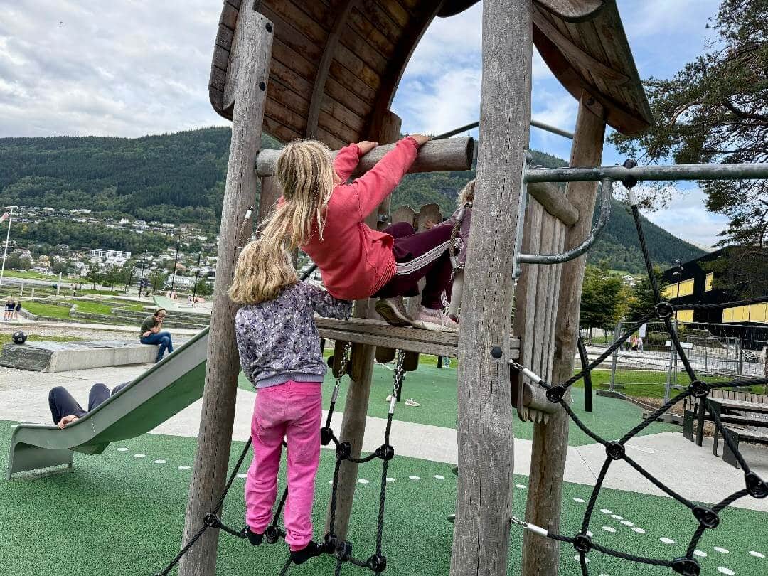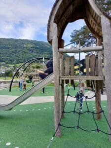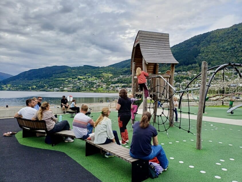Etter en kort samling gikk turen fra hotellet til aktivitetsparken ved Vangsvatnet – et flott sted for lek, aktivitet og nye bekjentskap for barna i trygge omgivelser, mens foresatte fikk gode samtaler og erfaringsutveksling.