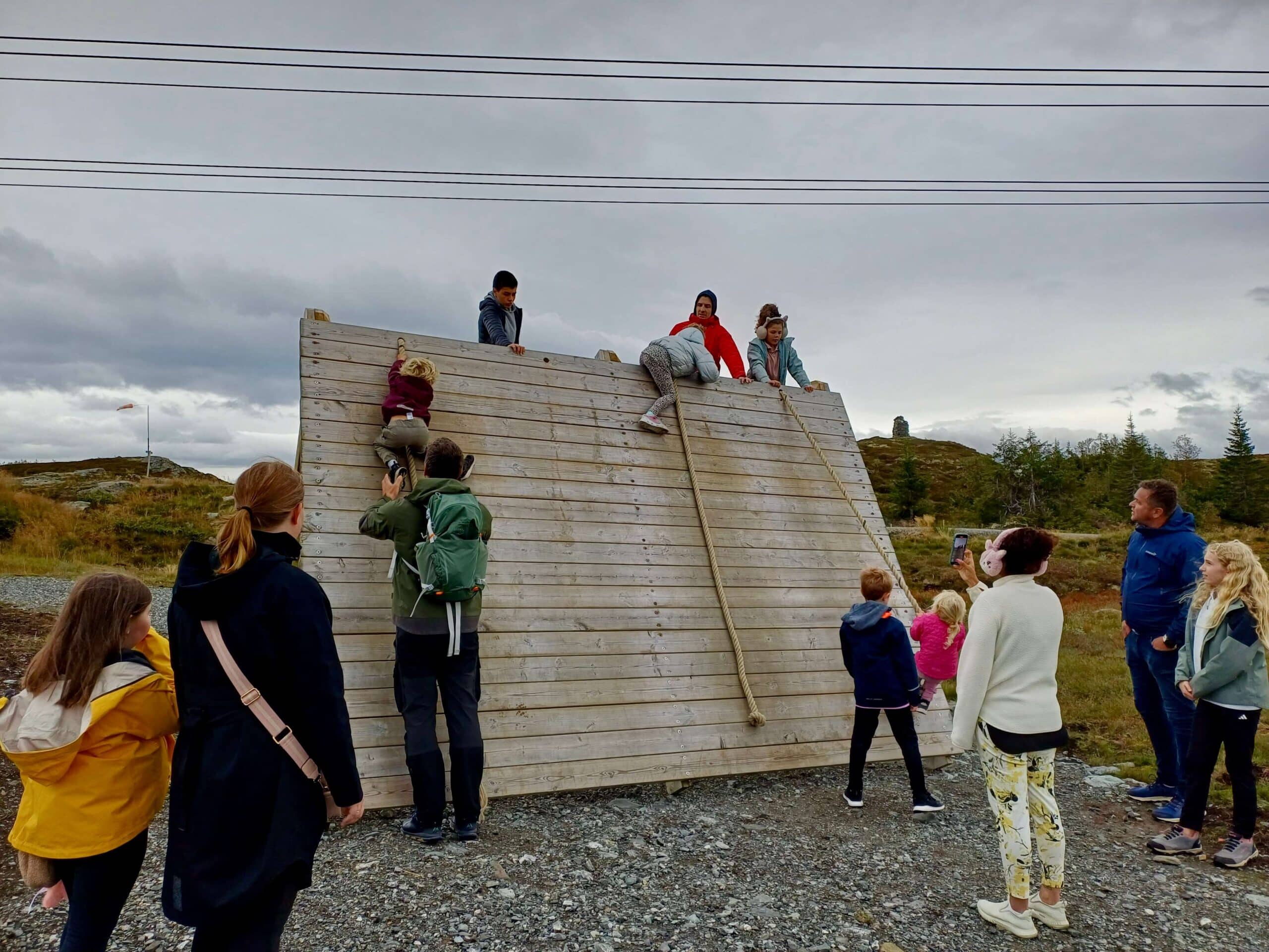 Søndag tok vi Voss Gondol opp til Hangurstoppen, hvor både små og store fikk utfordret seg i klatring, samhandling og utforsking – en flott avslutning på helgen. 🚠