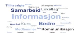 Ordet «informasjon» var størst, noe som også sammenfaller bra med svarene i kommunikasjonsbolken. Samarbeid, bedre og kommunikasjon var det også mange som svarte.